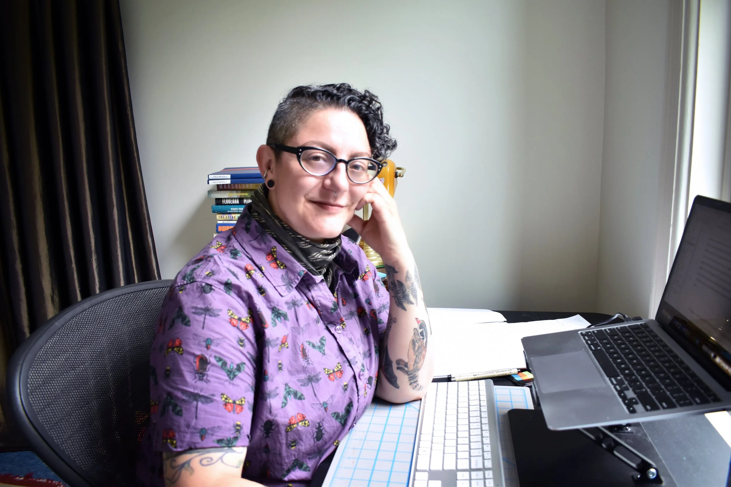 As a queer person whose communities are both historically persistent and currently under threat, Audacia approaches their creative writing and art not as a respite but as a site for survival, metamorphosis, and adaptation. Their short stories are published in The Hopper, Necessary Fiction, Litro Magazine, Superstition Review, and Stone Canoe, and their story “Don’t Look at the Owls” was nominated for a 2025 Best of the Net Award. Their work has been supported by the Peter Bullough Foundation and they are a 2025-2026 Creature Conserve mentee. Their visual art is inspired by nature journaling, field guides, and other forms of ecological study. They combine drawing, watercolor and gouache, nature printing, linocut, and collage to create a series of works on paper about the queer ecology of vernal pools.
